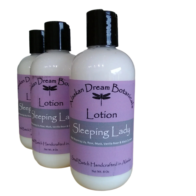 Sleeping Lady's scent is a luxurious and captivating blend of romantic florals, rich musk, and sweet vanilla bean, with a touch of fruity black currant. The night blooming lily and rose notes give this fragrance a feminine and delicate quality, while the musk and vanilla bean add a warm and sensual depth. The black currant note adds a hint of sweetness and fruitiness to the overall composition, creating a well-balanced and alluring scent.